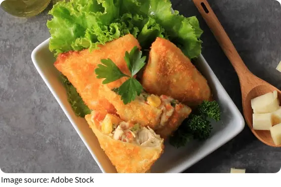 5. Serve: Plate your risoles with cheese, mayo, and chili sauce for dipping.